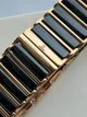 Корпус часов выполнен из высококачественной нержавеющей стали, а браслет дополнен изящными вставками из керамики.